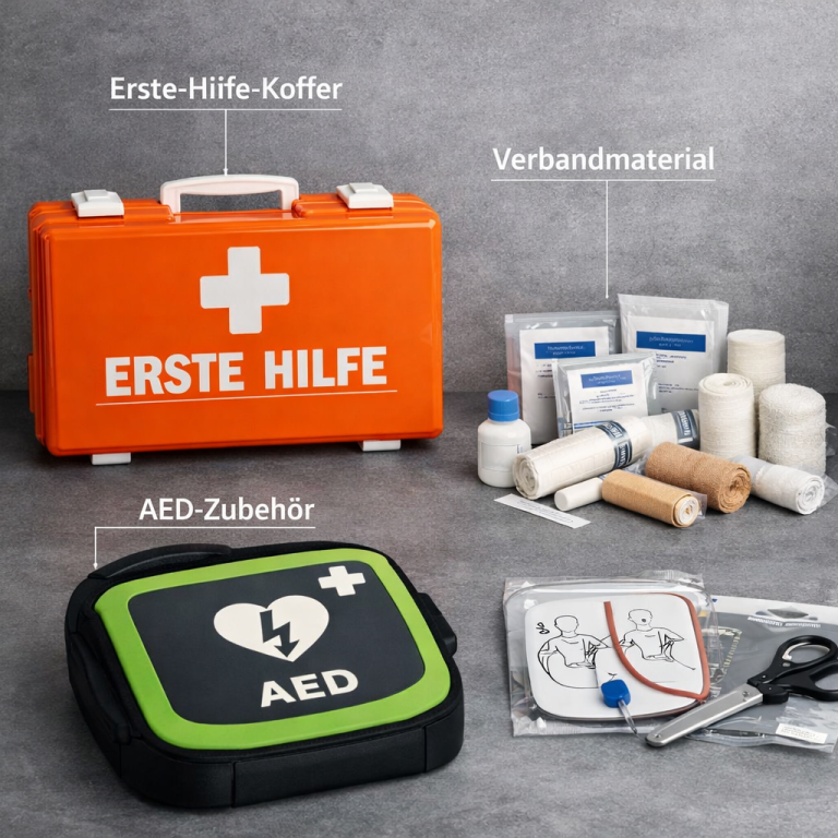 Lieferung, Prüfung und Bereitstellung von Erste-Hilfe-Material, AED-Zubehör und Brandschutzartikeln wie Feuerlöscher.