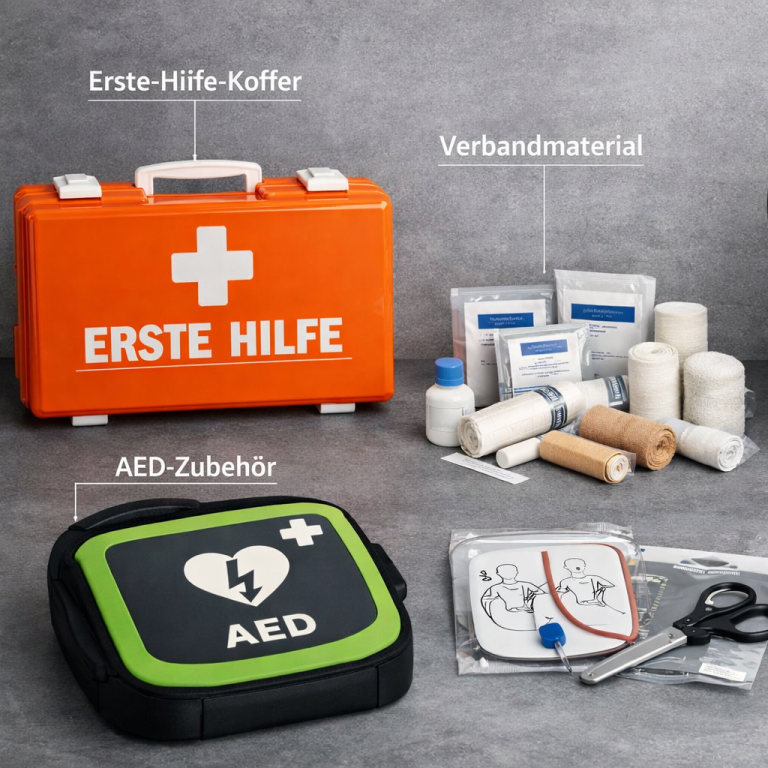 Lieferung geeigneter Notfall- und Erste-Hilfe-Ausstattung entsprechend Ihrem betrieblichen Bedarf.